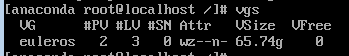 按“Ctrl+Alt+F2”可以切换到命令行,执行如下命令找到卷组。