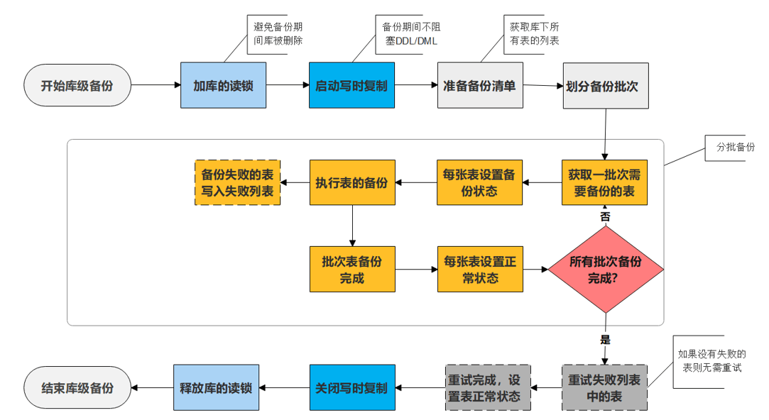 - 写时复制技术是保障在线备份不阻塞 DDL/DML 和数据一致性的关键技术。