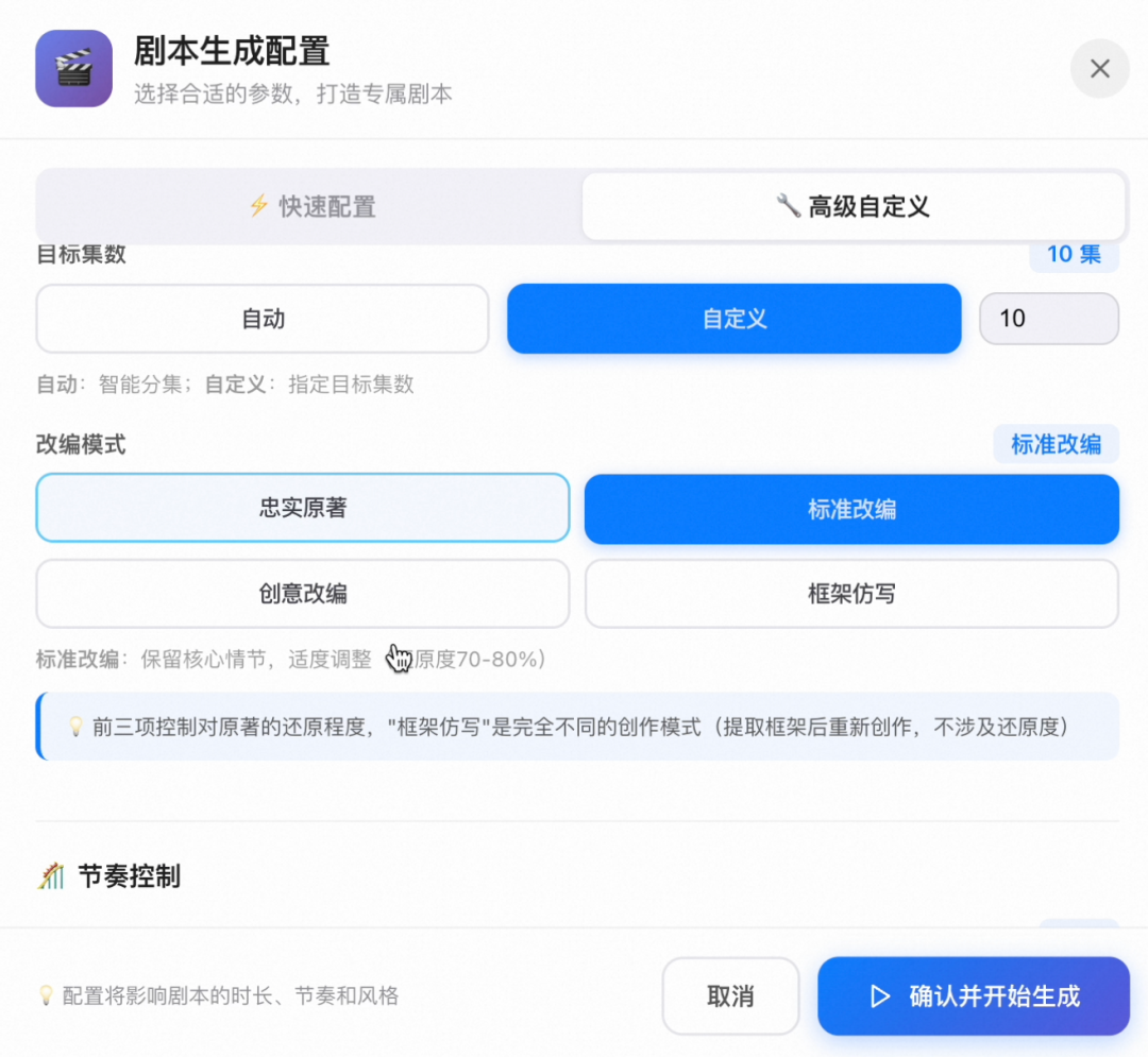 结构化策划:根据用户设定的风格、时长、目标受众等参数,利用知识图谱中的脉络信息进行剧本大纲设计和分集规划; 精细化创作:基于ADB-PG长记忆能力将人物性格特征总结成人物个性化记忆,生成符合角色设定的台词,在每一集中精心设置悬念点和高潮段落; 原著还原控制:通过RAG技术动态检索原始文档,确保改编剧本不偏离原著的核心精神。