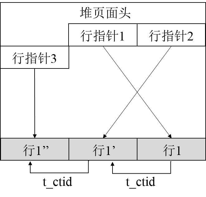 原有行失效,通过ctid记录新版本的ctid,进而指向下一行
