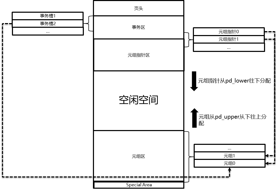 (6) pd_special:页面尾部特殊区域的起始位置。该特殊位置位于第一条元组记录和页面结尾之间,用于存储一些变长的页面级元信息,如索引的辅助信息等。