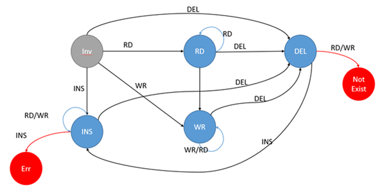 INV:无效操作(INVALID);RD:读操作(READ);WR:写操作(WRITE);DEL:删除操作(DEL);INS:插入操作(INSERT)。