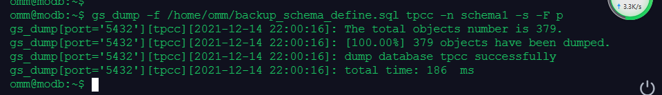 gs_dump -f /home/omm/backup_database_define.sql backup -s -F p