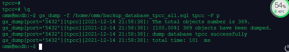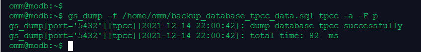 gs_dump -f /home/omm/backup_database_all.sql backup -F p