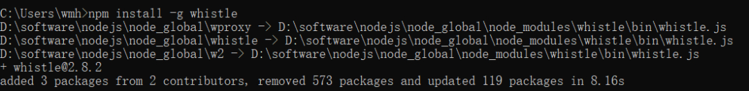 --使用npm安装whistlenpm install -g whistle--指定淘宝镜像安装cnpm,也可以使用cnpm安装whistlenpm install cnpm -g --registry=https://registry.npm.taobao.orgcnpm install -g whistle
