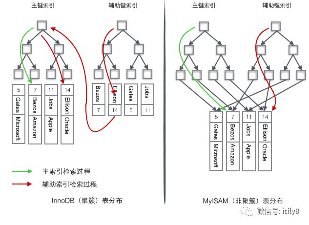 MyISAM的索引方式也叫做“非聚集”的,之所以这么称呼是为了与InnoDB的聚集索引区分。