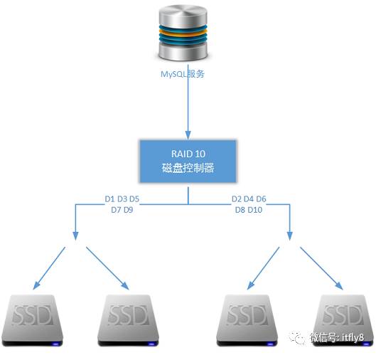 使用固态硬盘作为MySQL服务的块存储基础,并使用RAID 10磁盘阵列作为硬件层构建方案——这是生产环境下单个MySQL服务节点的基本组成逻辑,当然读者可以视自己生产环境下的的实际容量和性能要求进行必要的调整:
