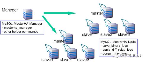 当master出现故障时,通过对比slave之间I/O线程读取master binlog的位置,选取最接近的slave做为latestslave。其它slave通过与latest slave对比生成差异中继日志。在latest slave上应用从master保存的binlog,同时将latest slave提升为master。最后在其它slave上应用相应的差异中继日志并开始从新的master开始复制。