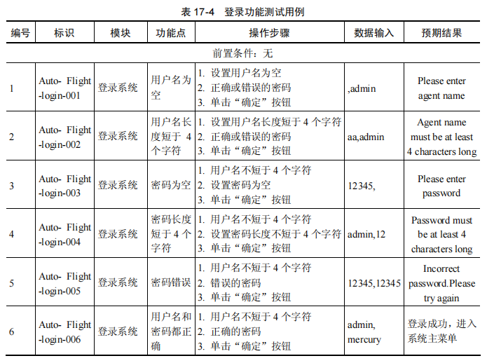 完成以上工作后,开始设计测试用例,设计的测试用例需要 100%覆盖自动化测试的需求。下面以登录、订票流程、航班信息功能和查询订票信息功能四个模块为例,设计测试用例。