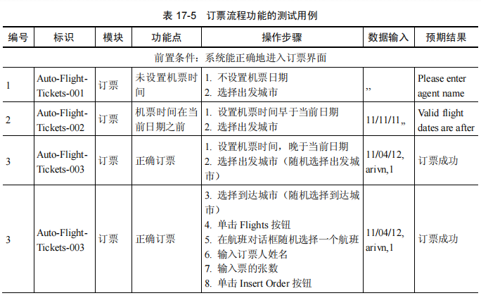通过对自动化测试需求的分析,本实例中适合自动化测试的功能主要包括登录、订票流程、航班信息、查询订票信息。