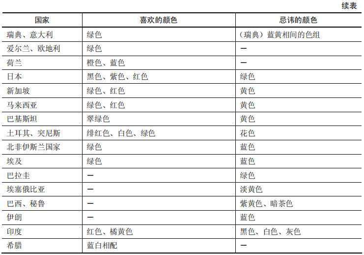 (5)颜色:在本地化过程中,界面颜色的选择也要注意,不同国家对待颜色也有所不同,如英国人忌讳白色。一些国家喜欢与忌讳的颜色见表 13-1。