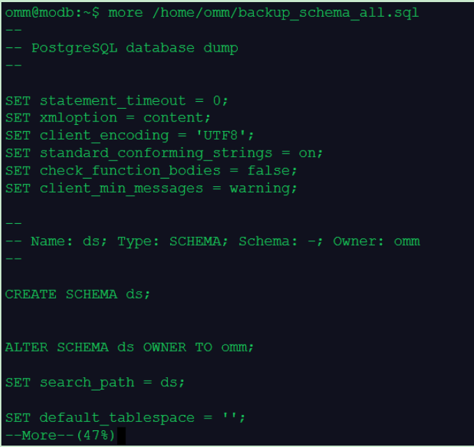 omm@modb:~$ more /home/omm/backup_database_data.sql