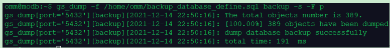 gs_dump -f /home/omm/backup_database_define.sql backup -s -F p