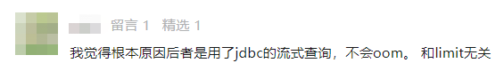 针对MySQL,JDBC驱动不支持像Oracle中使用的fetchSize缓冲区,但是如果设置PreparedStatement的setFetchSize为Integer.MIN_VALUE,或者使用方法Statement.enableStreamingResults(),就可以实现流式查询,即执行ResultSet.next()方法时,会通过数据库连接一条一条的返回,不会大量占用客户端的内存,导致OOM。