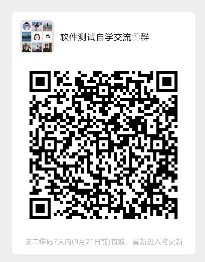 给大家推荐一个软件测试自学群,识别下方二维码,免费领取学习课件、视频哦。