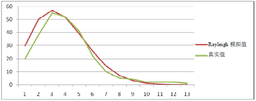 将数据代入到Rayleigh模型中的概率密度函数中,得到PDF为: