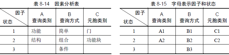 步骤1:分析规格说明书,生成因子-状态表,见表8-13。