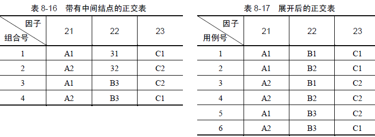 将正交表中的中间结点展开,见表8-17。