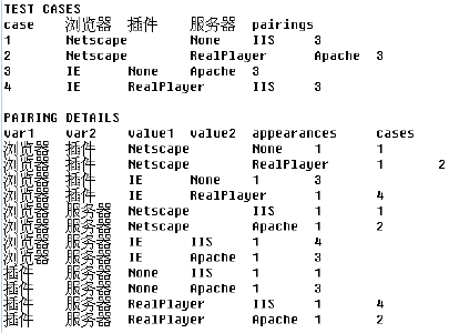 只有TEST CASES 的内容是正交表的内容,PAIRING DETAILS 的内容不需要关注。