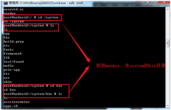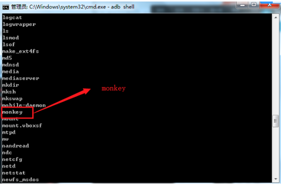Monkey需要通过adb来命令来运行 ,Monkey属于android系统自带的一个工具,文件存在于android的/system目录中。