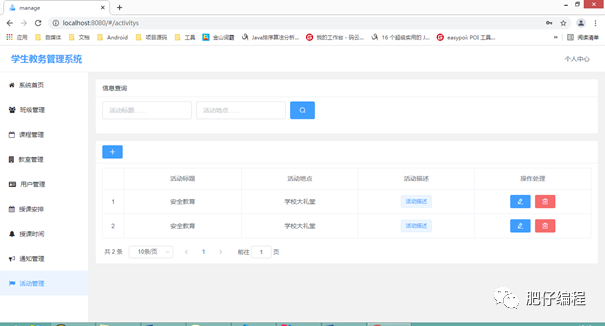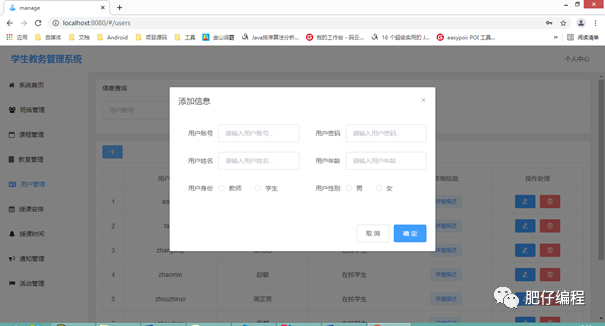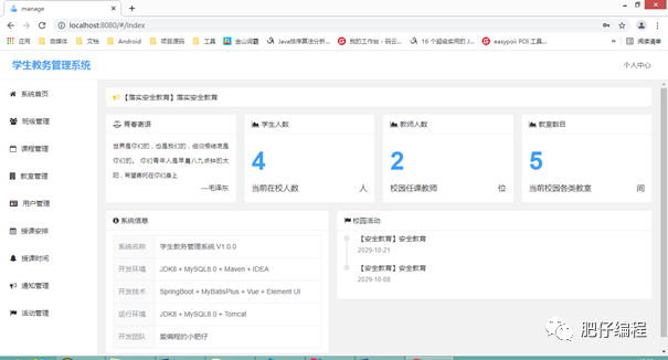 本套项目在后端使用SpringBoot+MyBatisPlus,数据库采用MySQL,前端页面结合当下流行的VUE+ElementUI,系统功能完善,界面简洁大方,项目整体理解难度中等,适合有一定基础开发基础的朋友,如果您需要本套项目可以添加我的微信 fatcoding,内容准备不易,感谢大家支持!