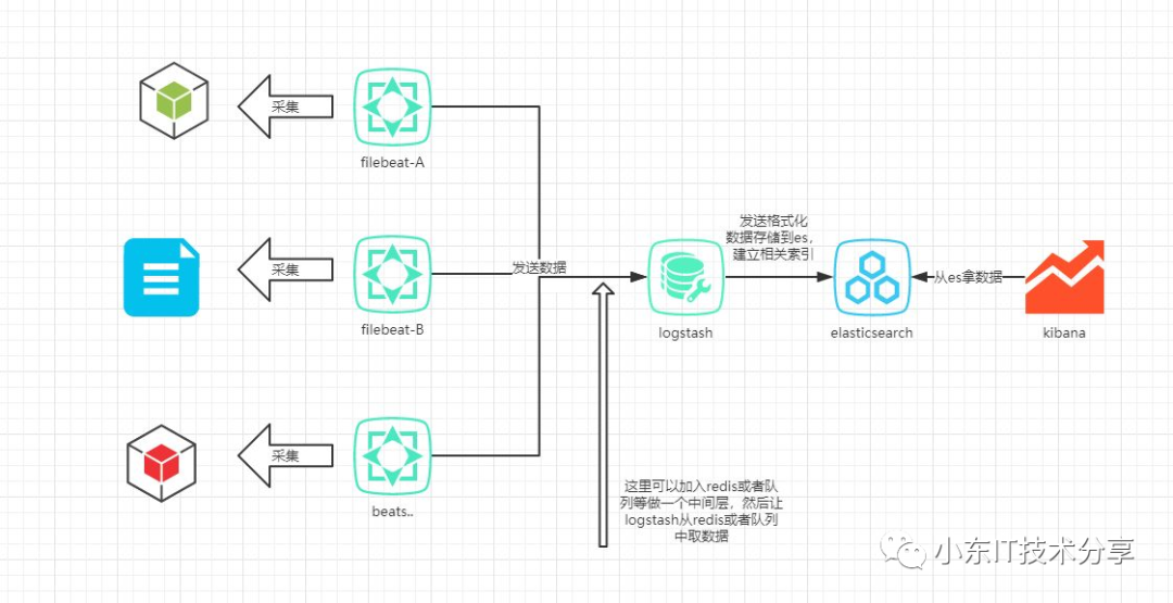 ELK是Elasticsearch、Logstash、Kibana的简称,这三者是核心套件实现日志采集、分析、展示,但并非全部。