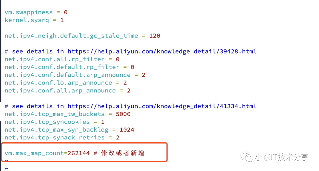 永久性的修改,在/etc/sysctl.conf文件中添加一行:grep vm.max_map_count /etc/sysctl.conf # 查找当前的值。