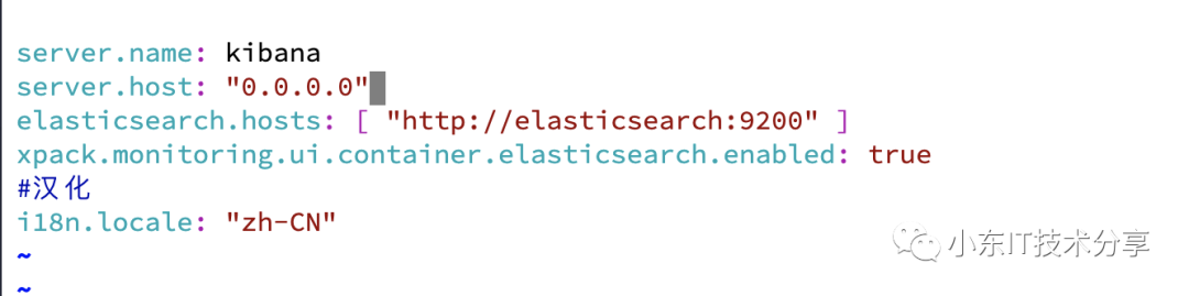 server.name: kibanaserver.host: "0"elasticsearch.hosts: [ "http://elasticsearch:9200" ]elasticsearch.username: elasticelasticsearch.password: xxxxpack.monitoring.ui.container.elasticsearch.enabled: true#汉化i18n.locale: "zh-CN"