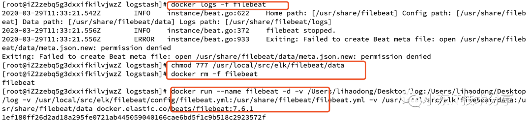 docker run --name filebeat -d \-v /Users/lihaodong/Desktop/log:/Users/lihaodong/Desktop/log \-v /usr/local/src/elk/filebeat/config/filebeat.yml:/usr/share/filebeat/filebeat.yml \-v /usr/local/src/elk/filebeat/data:/usr/share/filebeat/data \docker.elastic.co/beats/filebeat:7.6.1
