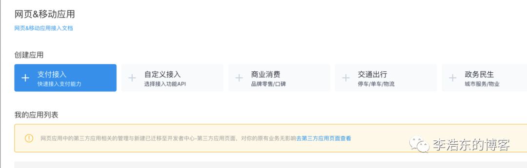 阿里提供了非常详细的各种功能的开发文档 蚂蚁开放平台开发文档 https://docs.open.alipay.com/,从开发文档中可以看到支付方式有四种,每一种都有应用的场景