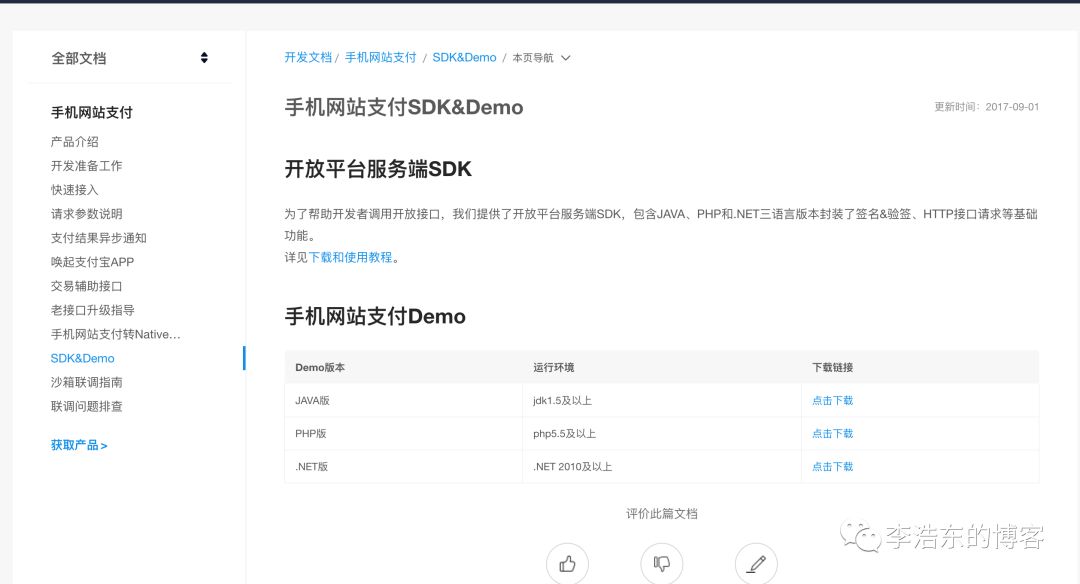 支付宝所需要的参数都已经知道了 下面就是看开发文档进行开发