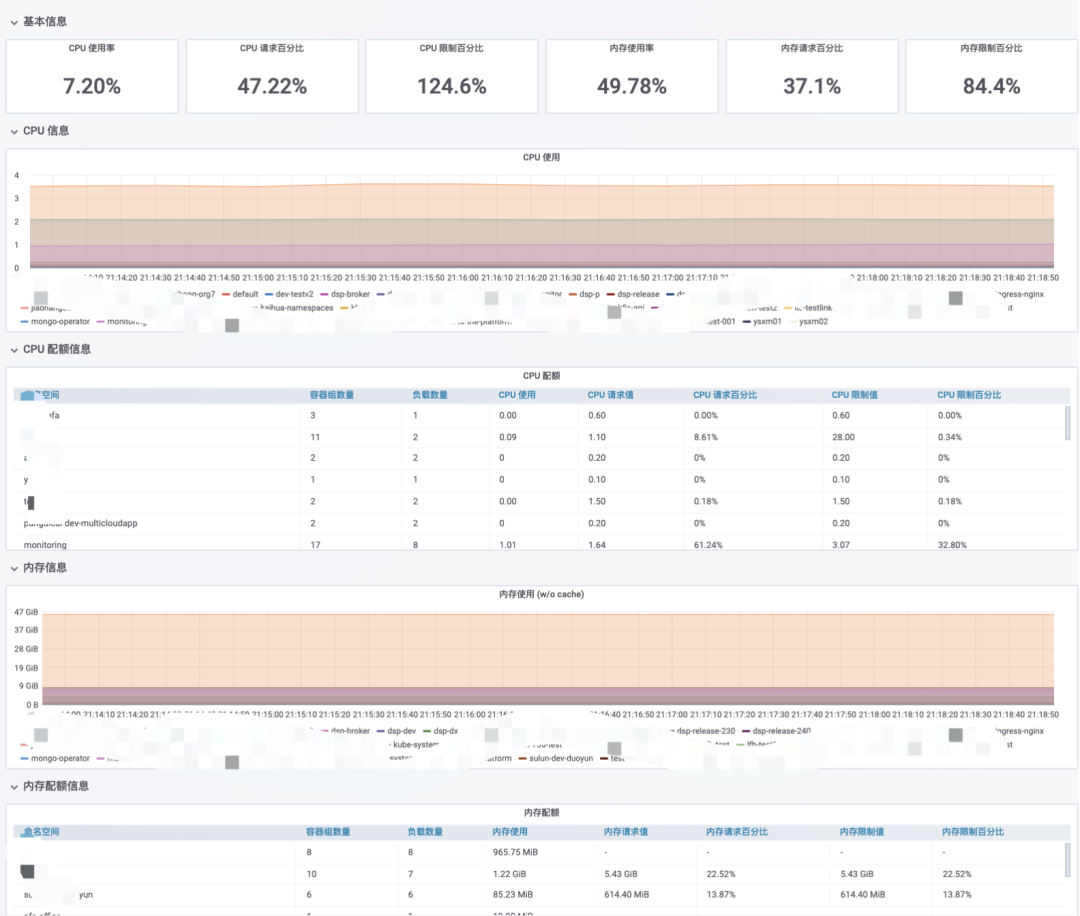 云原生 UI 根据服务端返回的 Grafana 地址,访问获取到自定义模版,界面展示。