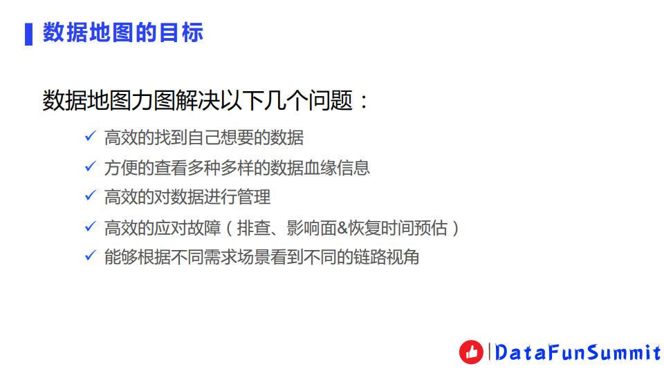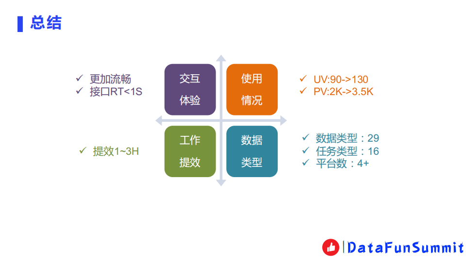A:数据治理要有一个效果指标来衡量工作的重要性,不是为做功能而做功能,而是真实的提供大家工作效率,减少一些起夜率,这些指标是有赞自己定义的。