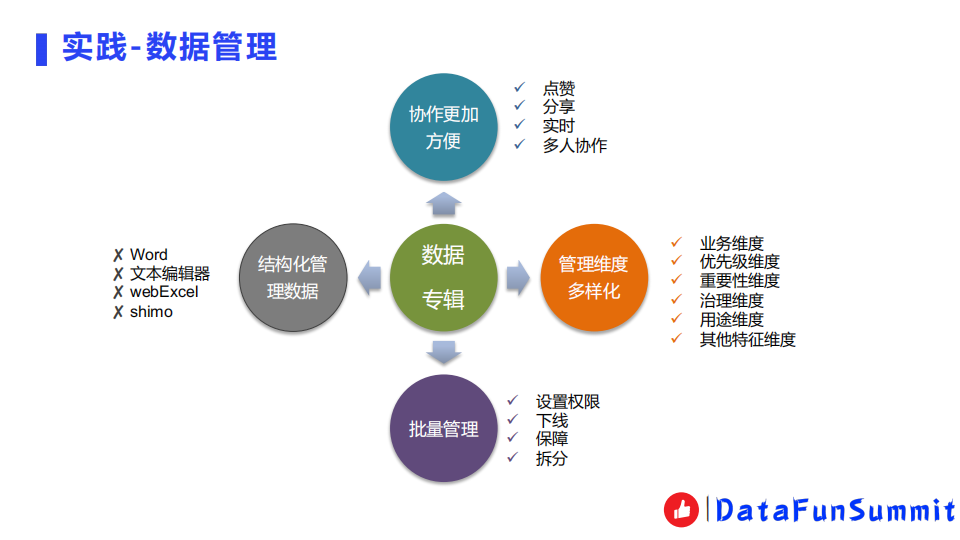 有赞采用数据专辑的方式进行数据管理,类似歌曲专辑一样,按不同维度对数据进行划分,实现对数据的分类管理。用数据专辑对数据进行管理有4个好处: