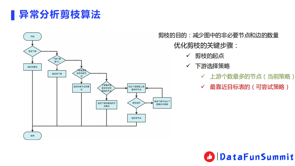 针对有赞当前下游选择的策略,异常分析剪枝算法为: