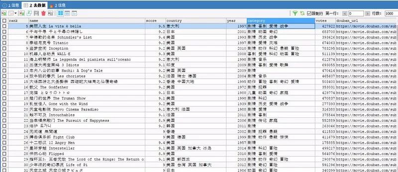 writer = csv.writer(open('movies.csv', 'w', newline='', encoding='utf-8')) fields = ('rank', 'name', 'score', 'country', 'year', 'category', 'votes', 'douban_url') writer.writerow(fields)