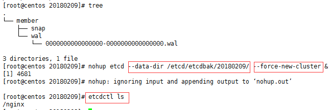 备份之后,然后进行解压报错,然后启动etcd进程,启动的时候,注意使用相关的参数,如下:
