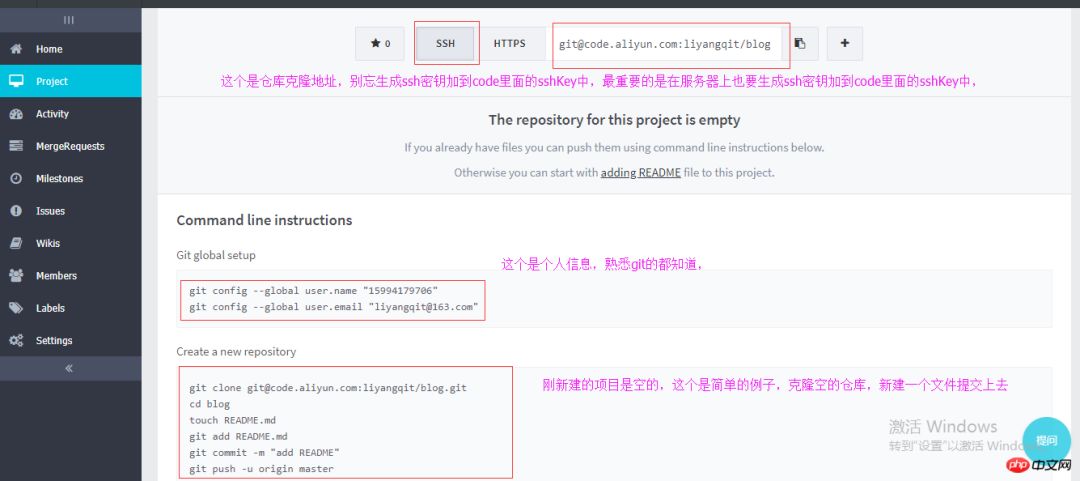 既然这么方便,那肯定事先也要做一些手脚的,这里是配合阿里云的免费代码托管平台code,如果有条件的话完全可以自己搭建一个GitLab进行托管。一般开发一个项目就是本地先调试,等本地的都开发完没问题后再部署到线上环境,这时本地环境和线上环境如果不同的话还会出现各种问题在进行线上调试。使用Git简单来说就是:项目开始前先去code上新建一个项目的仓库,新建成功之后会自动生成一个仓库的地址,这个时候本地和服务器端就可以使用Git进行克隆此项目,克隆下来之后通过在宝塔界面「服务器界面管理」配置的一个钩子地址可以映射到服务器上。