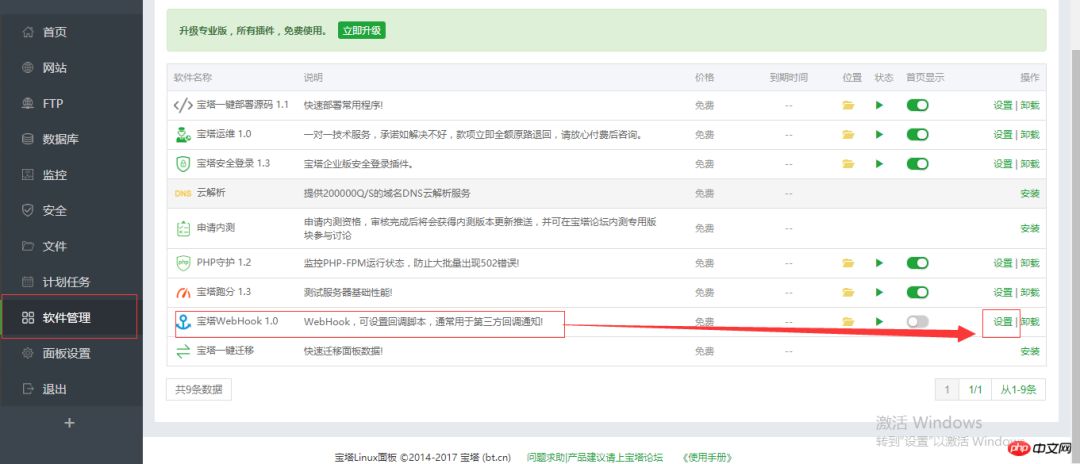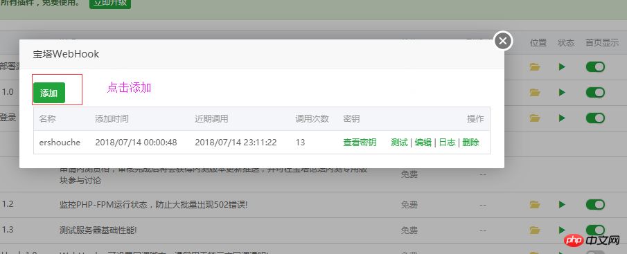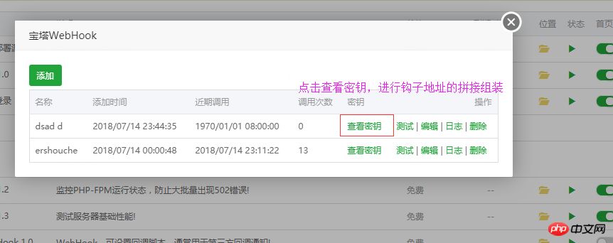 7、点击webhook钩子的设置,是这个界面,如果是第一次,里面就是空的,按照截图说明操作即可。