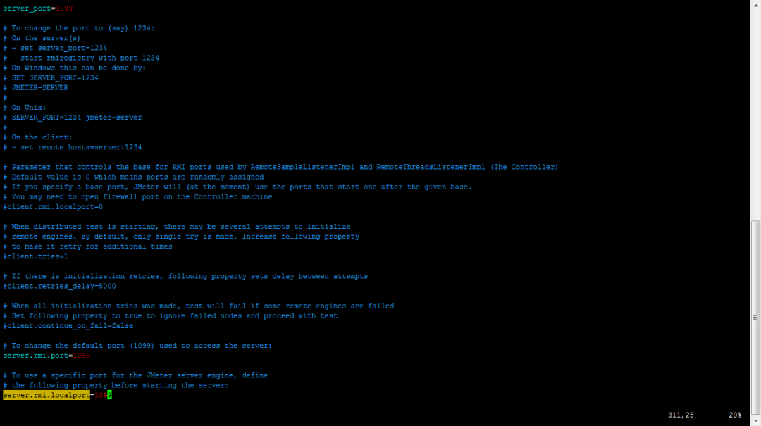 2.解开remote_port、server.rmi.localport、server.rmi.port注释,开放端口,默认为1099。