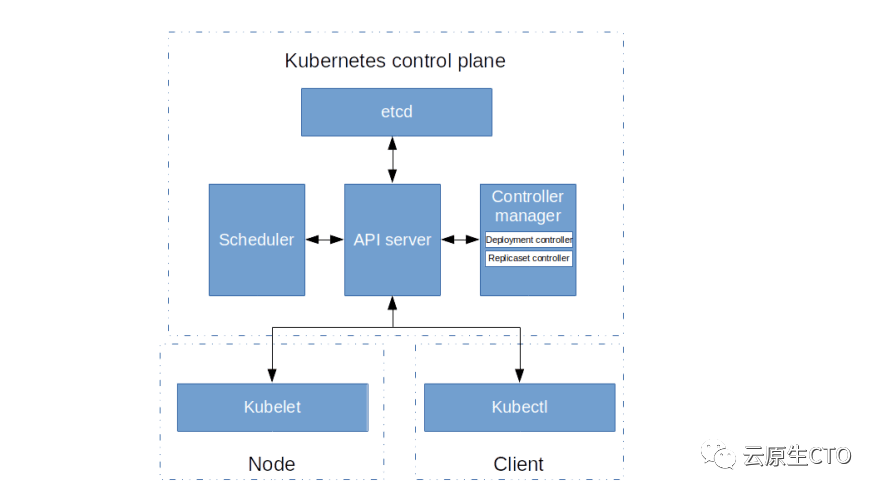 ,它会找出负责运行工作负载的节点并将其分配给该节点。然后该节点上的另一个控制器接收此分配,从而确保启动所需的容器。