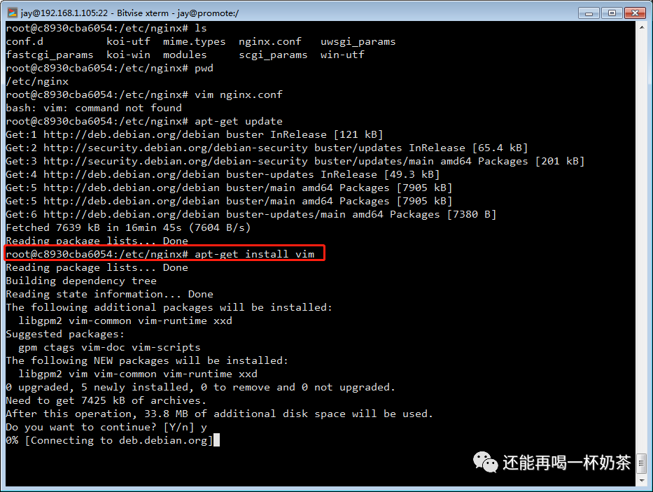2)安装vim命令(docker默认是没有安装vim命令的)