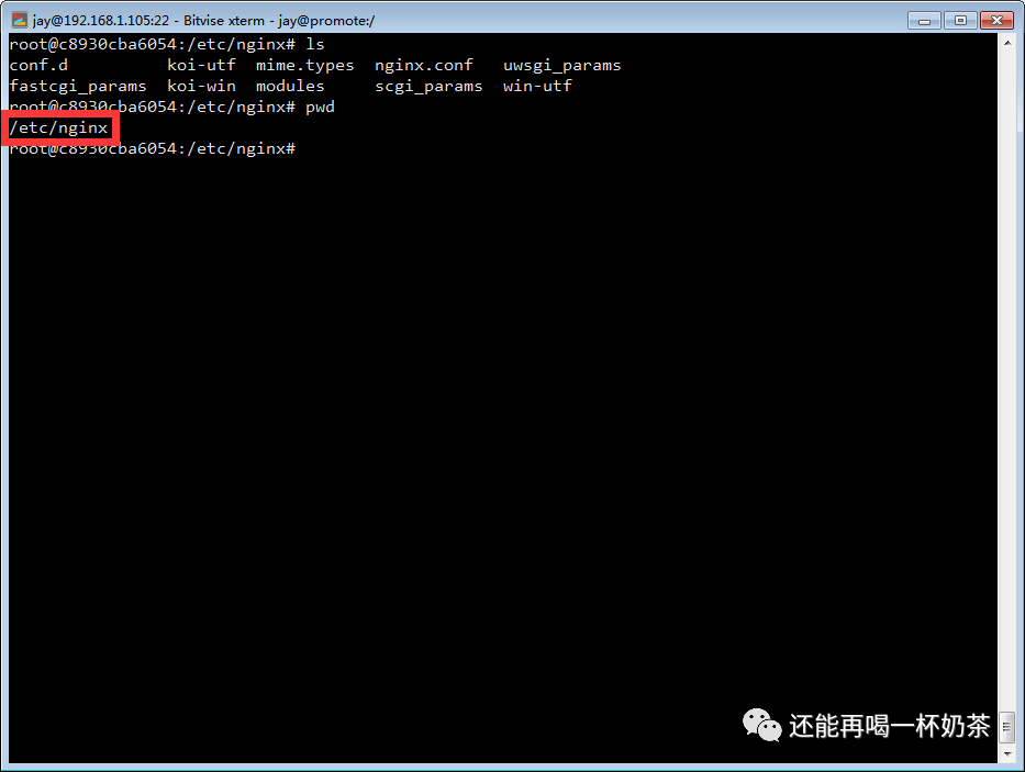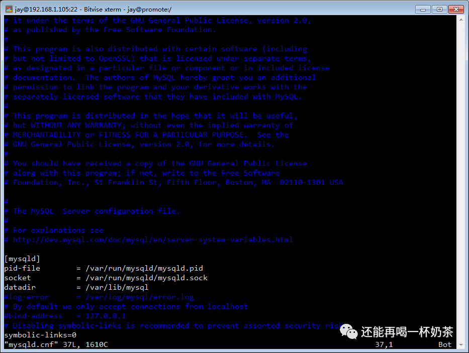 下图是mysql配置文件路径及其内容,如果要修改端口或者其他内容直接编辑配置文件即可,nginx同样的(修改完配置文件以后重启镜像就可以了)