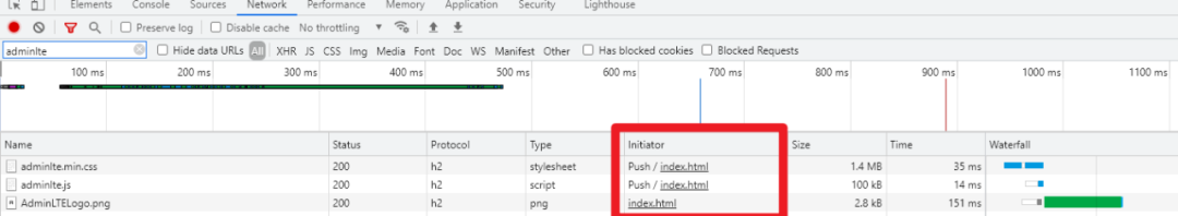 浏览器在请求时,通常会依赖资源类型给出权重,在请求的 HEADERS 帧和 PRIORITY 帧中传输到服务器端。通常来说,html 请求权重最高,css、images、js、fonts 相对低一些,通常是静态分配的。而依赖关系由资源的 Referer 来确定。