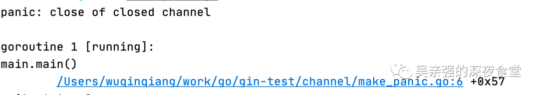 你可能会说,我咋么会犯这么愚蠢的错误。这只是一个很简单的例子,实际项目是很复杂的,一不小心,你就会忘了自己曾在哪一个 g 里关闭过 channel。
