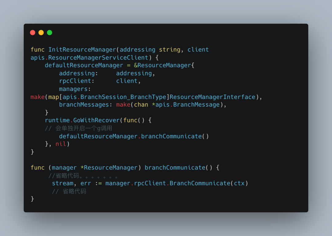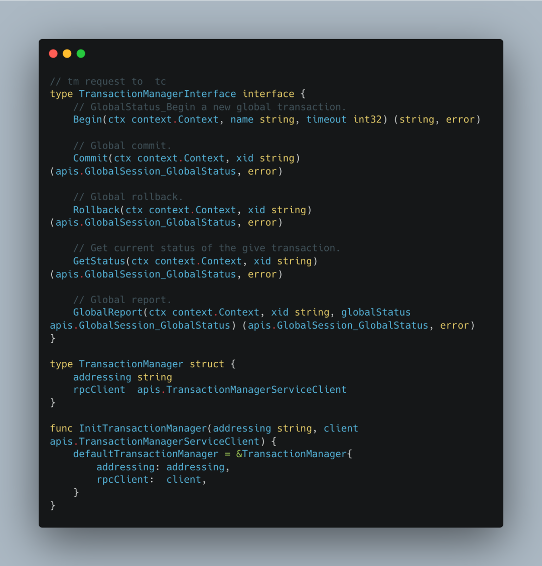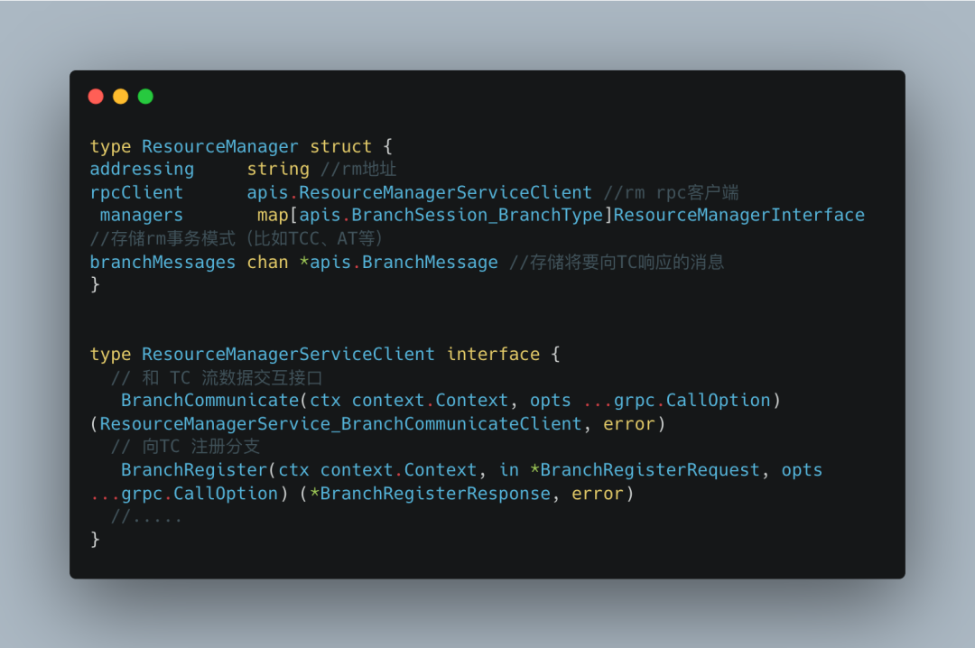 好了。下面可以看看seata-golang 实现的一些细节了,seata-golang 底层采用gRPC进行通信。