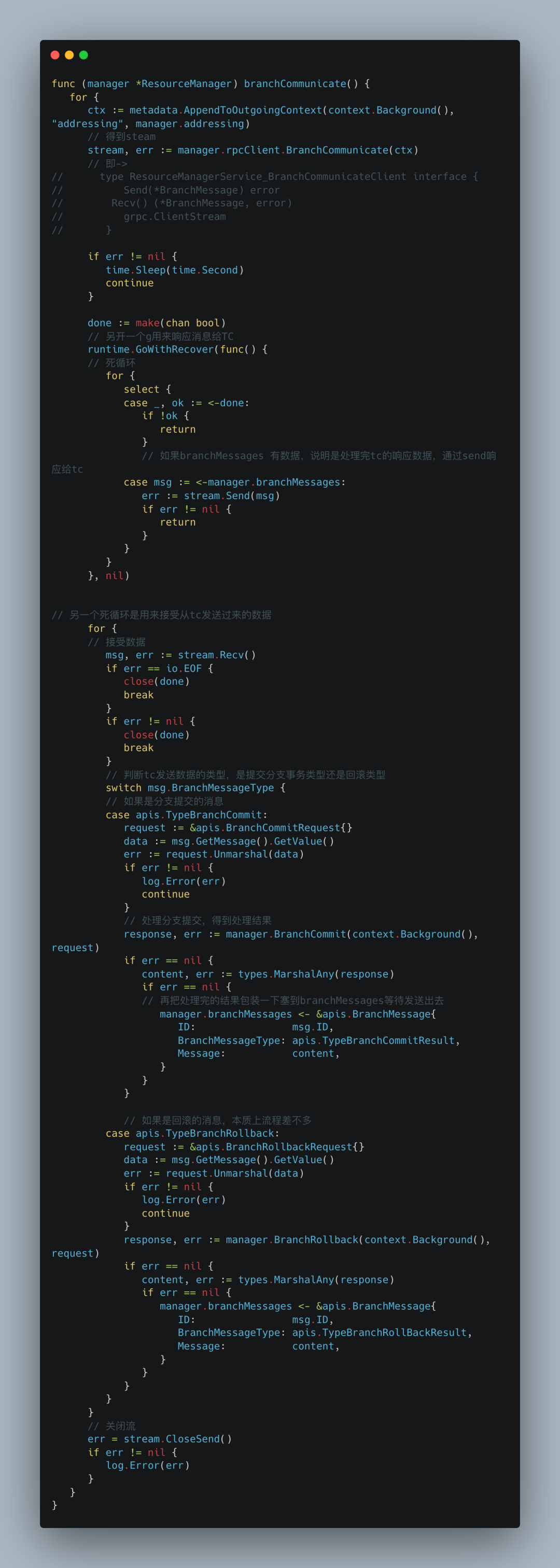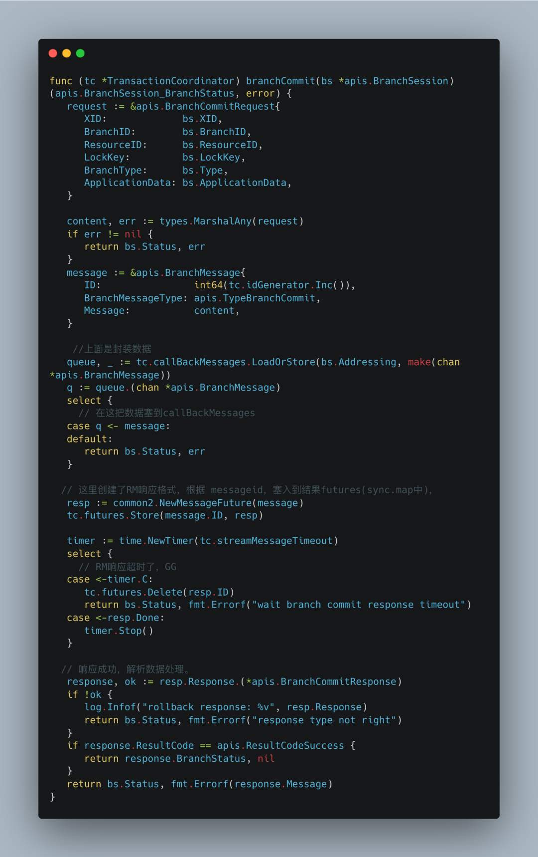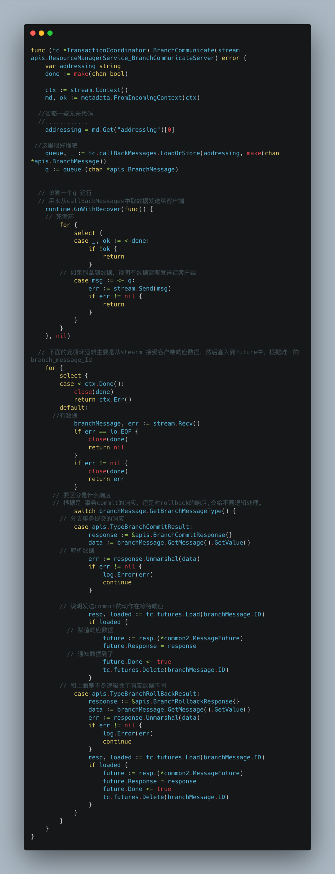好了。下面可以看看seata-golang 实现的一些细节了,seata-golang 底层采用gRPC进行通信。