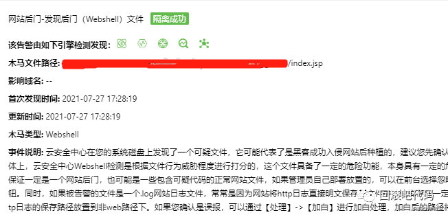 其中提到了index.jsp是一个木马文件,同时指定了木马类型为Webshell;