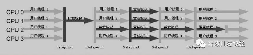 我们可以这样: 我在你吃瓜子期间去打扫房间,你一边吃,我一边打扫房间,打扫完一遍后,我再让你停止,然后再去打扫"在我打扫期间你扔的瓜子皮"(这叫做浮动垃圾),打扫完后你就可以继续吃了,同时我把垃圾清理了.这跟CMS的垃圾收集方式是一样的,说白了就是: 「分片执行」.这跟操作系统的时间片轮转调度算法是一个道理.