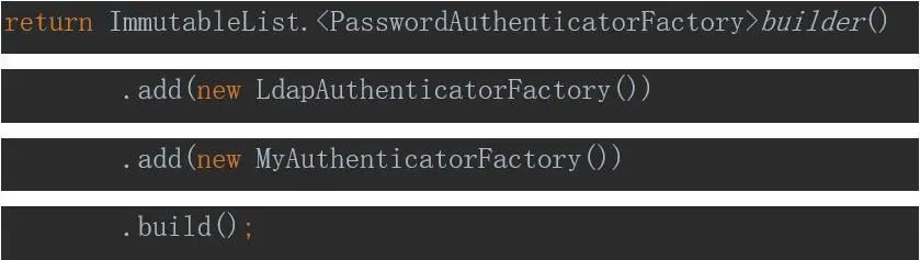 3. 最后在PasswordAuthenticatorPlugin中加上实现的MyPasswordAuthenticatorFactory类即可。